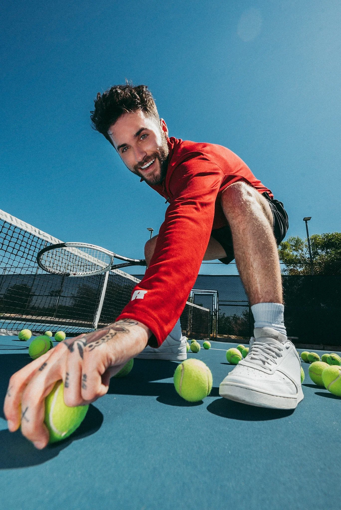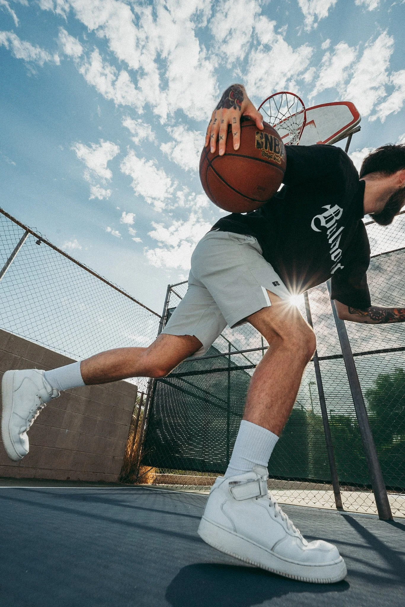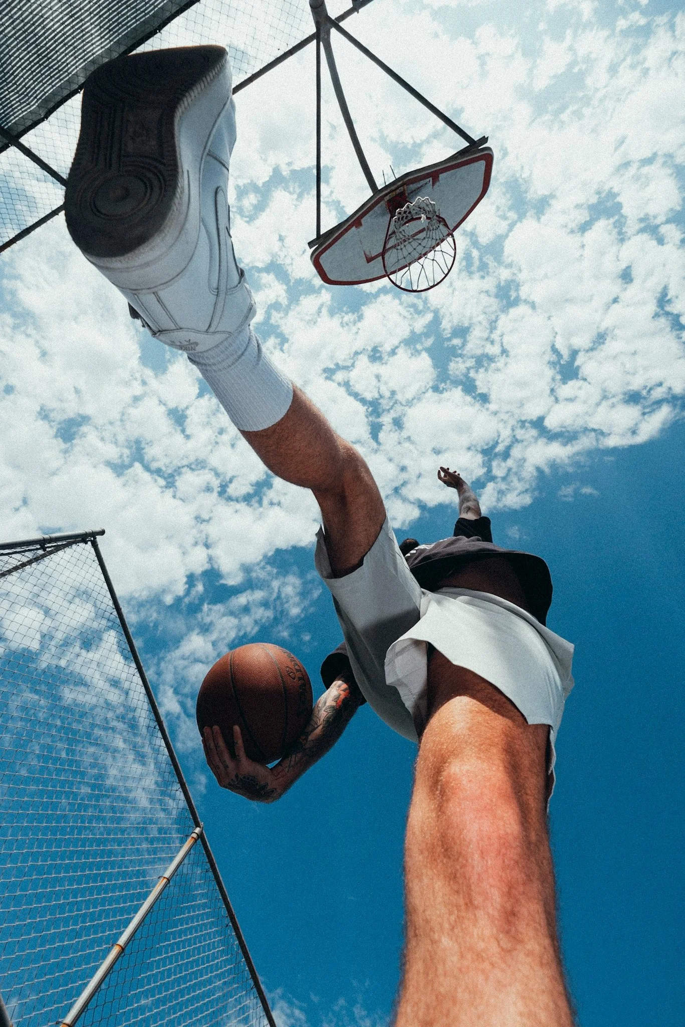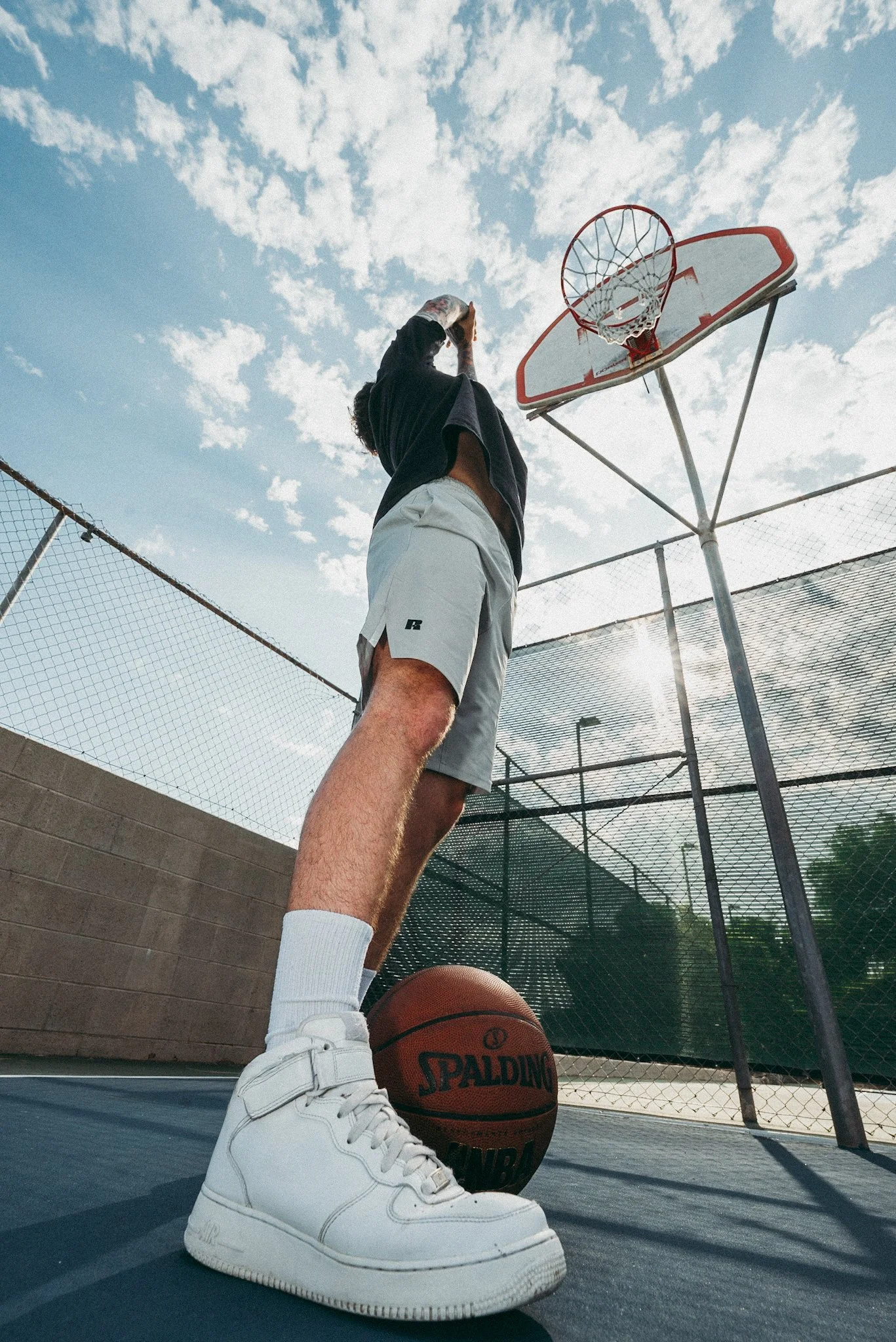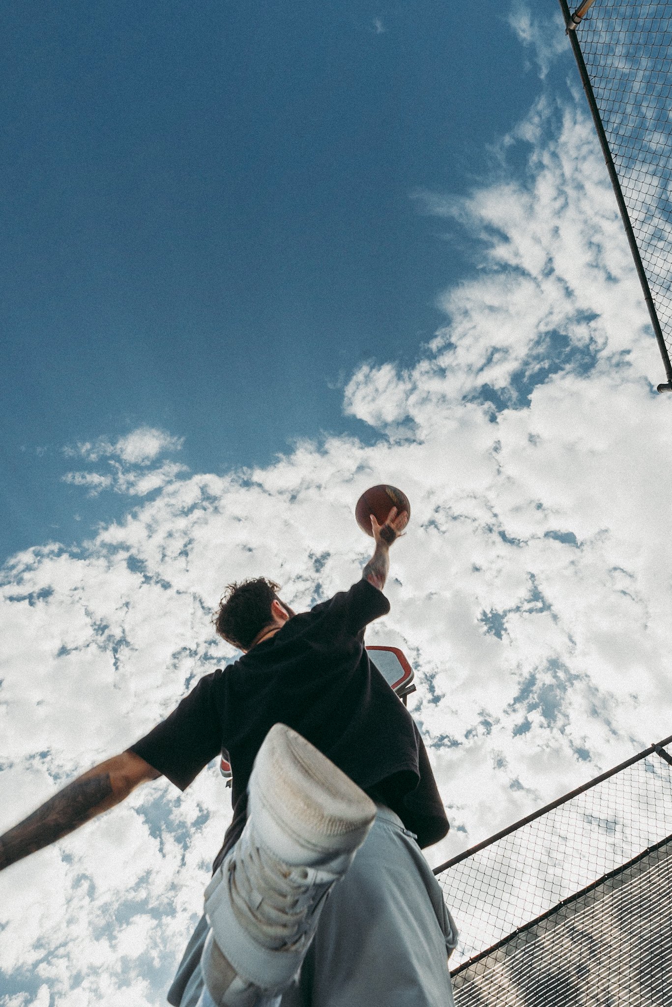 I built the concept around two familiar sports settings, tennis and basketball, to show how the garments move in real use. Low angles add energy and scale, while intentional framing keeps the ¾-zip shape and shorts length easy to read. I used strong natural sunlight to define texture and form, and chose court surfaces that contrast with the wardrobe so the product stays visually distinct.
